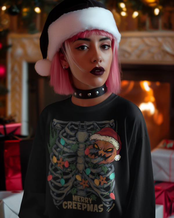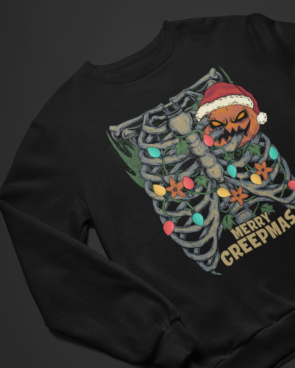 Unveil our haunting “Merry Creepmas Sweatshirt”, designed for those who don’t just celebrate Christmas — they summon it from the shadows.