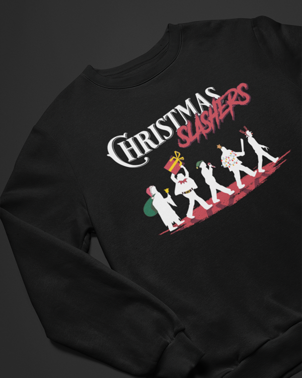Step into the sinister side of the season with Wunderling Cult’s “Christmas Slashers” Sweatshirt.