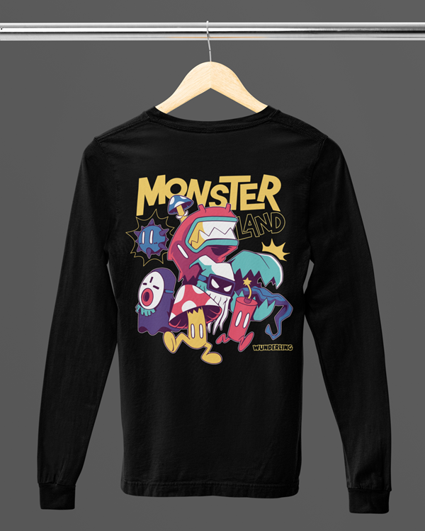Monster Land is a love letter to chaotic game worlds, colorful monsters and playful darkness. This design combines indie-game aesthetics, bold cartoon characters and a touch of cute horror into one loud, energetic illustration.